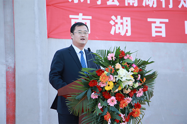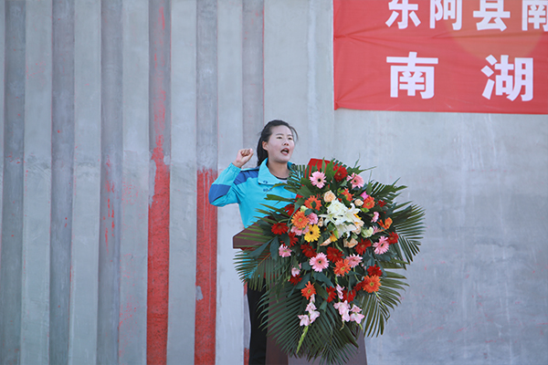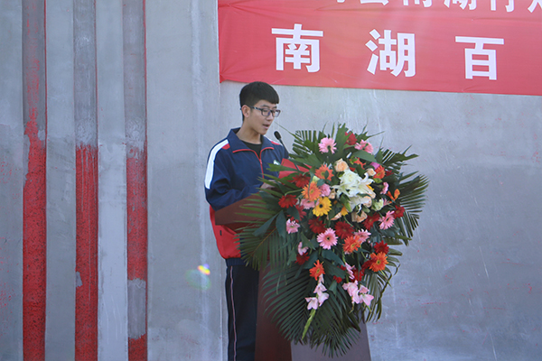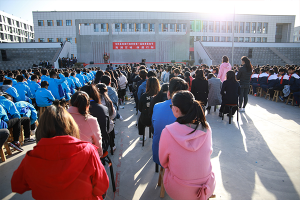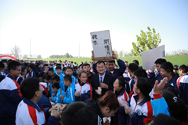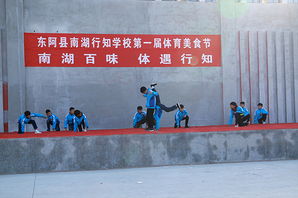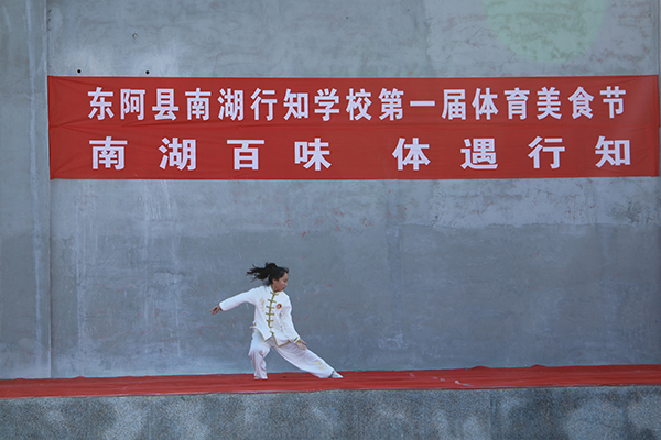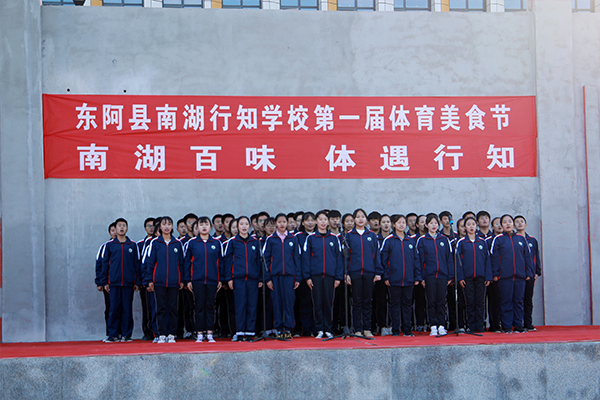 王建磊副校长宣布东阿县南湖行知学校第一届体育美食节开幕