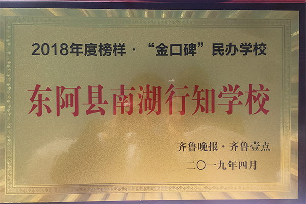 喜讯:东阿县南湖行知学校被评为聊城市“金口碑”民办学校