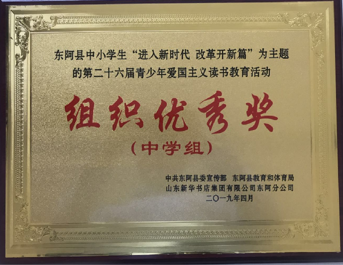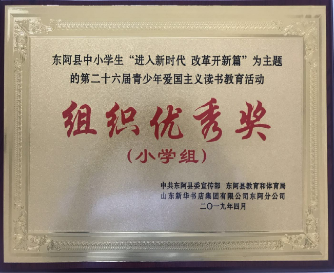 东阿县南湖行知学校荣获组织优秀奖